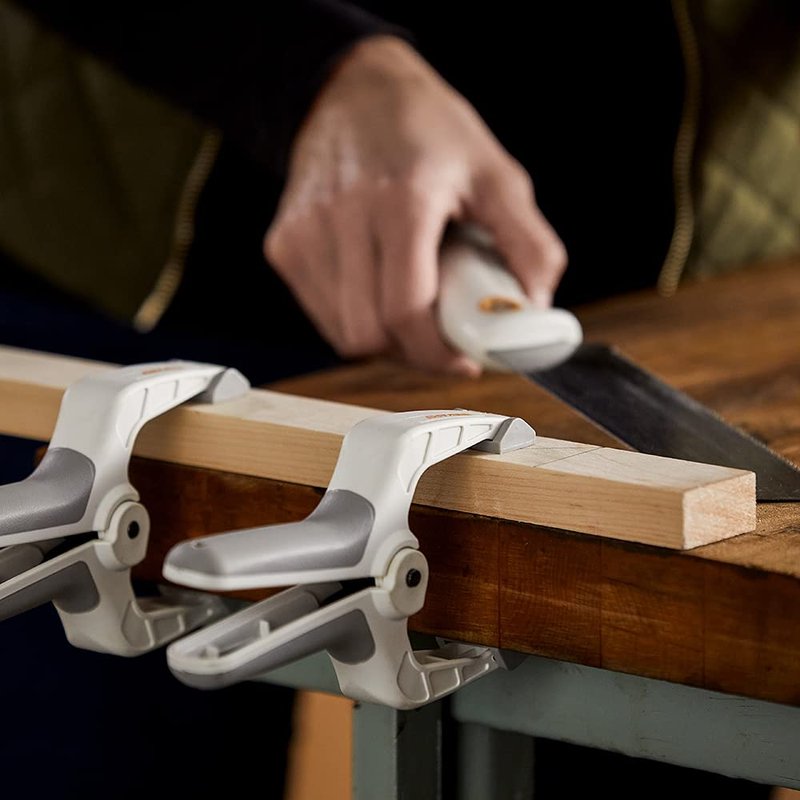 - Fiskars Spring Clamp Set features four durable clamps with pivoting jaw pads for an even grip while securing together DIY materials