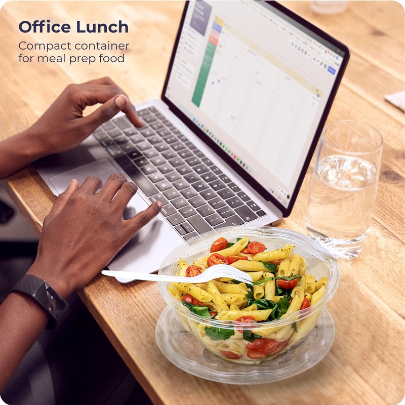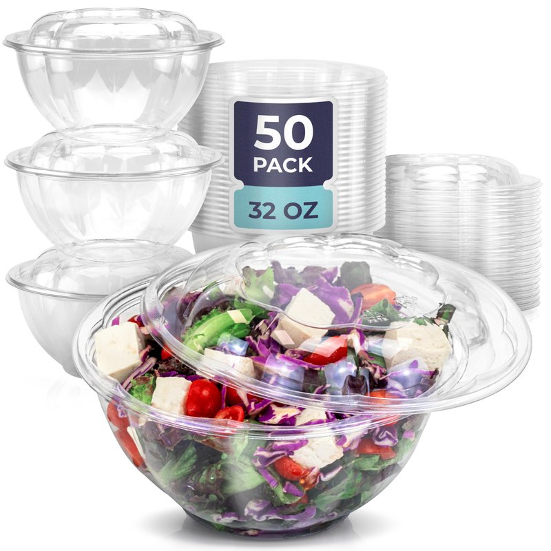 Fit Meal Prep 150 Pack 32 oz Clear Plastic Salad Bowls with Airtight Lids, Disposable To Go Salad Containers for Lunch, Meal, Party, BPA Free Clear Bowl for Acai, Green Salad, Fruits, Nuts
