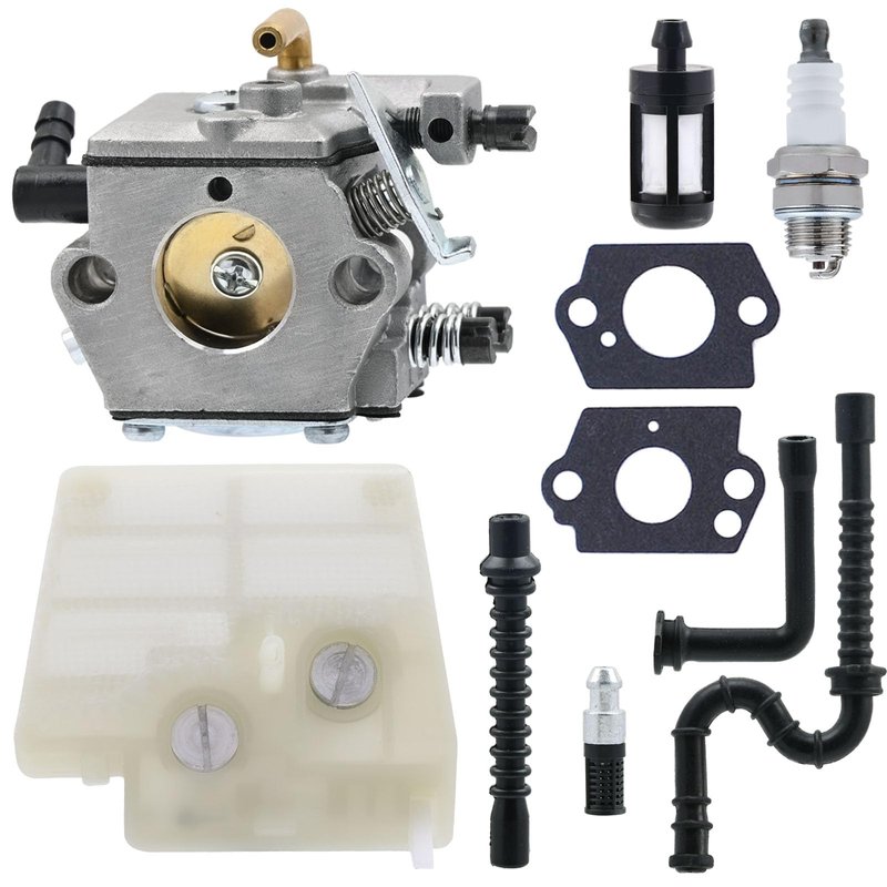 - Package including: 1 x carburetor, 2 x gaskets, 1 x Air filter, 1 x fuel filter, 1 x spark plug, 1 x oil filter, 1 x fuel line, 1 x oil line, 1 x impulse line