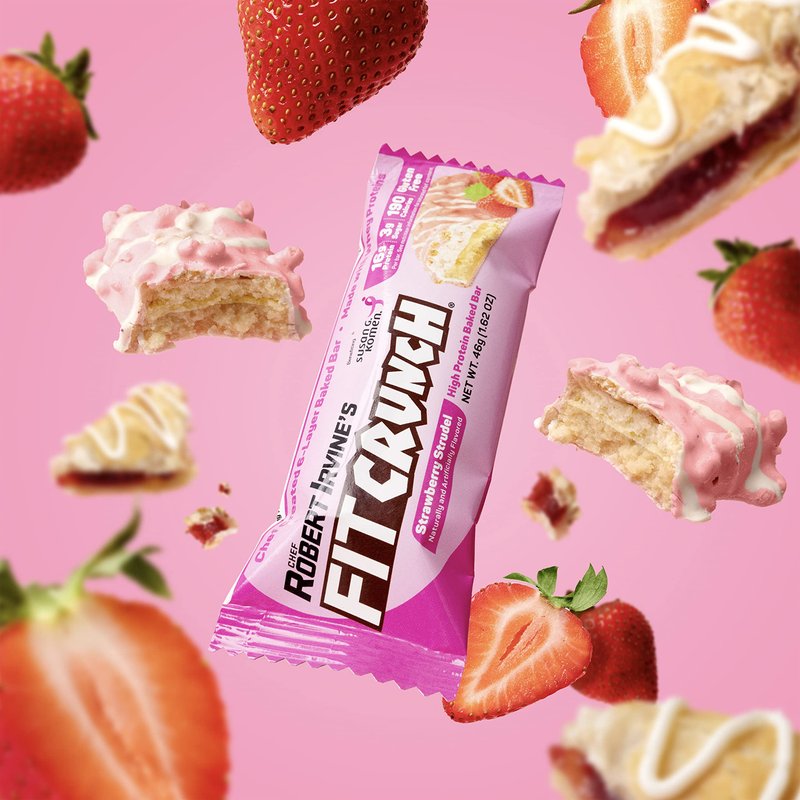 Chef Robert Irvine’s FITCRUNCH Strawberry Strudel protein bar captures the flavor of the classic pastry without the guilt that comes with a sugary bakery treat. On top of a soft-baked cookie bar sits a rich layer of strawberry-flavored cream, smooth layers of white chocolate, graham cracker pieces for a crunch, and topped with a drizzle for some pizzaz. The Strawberry Strudel bar satisfies cravings with an unmatched taste that you’d only expect from a world-renowned chef. FITCRUNCH makes getting your protein more enjoyable than ever before.