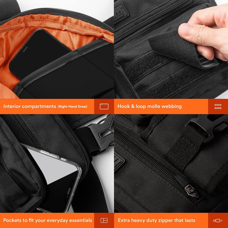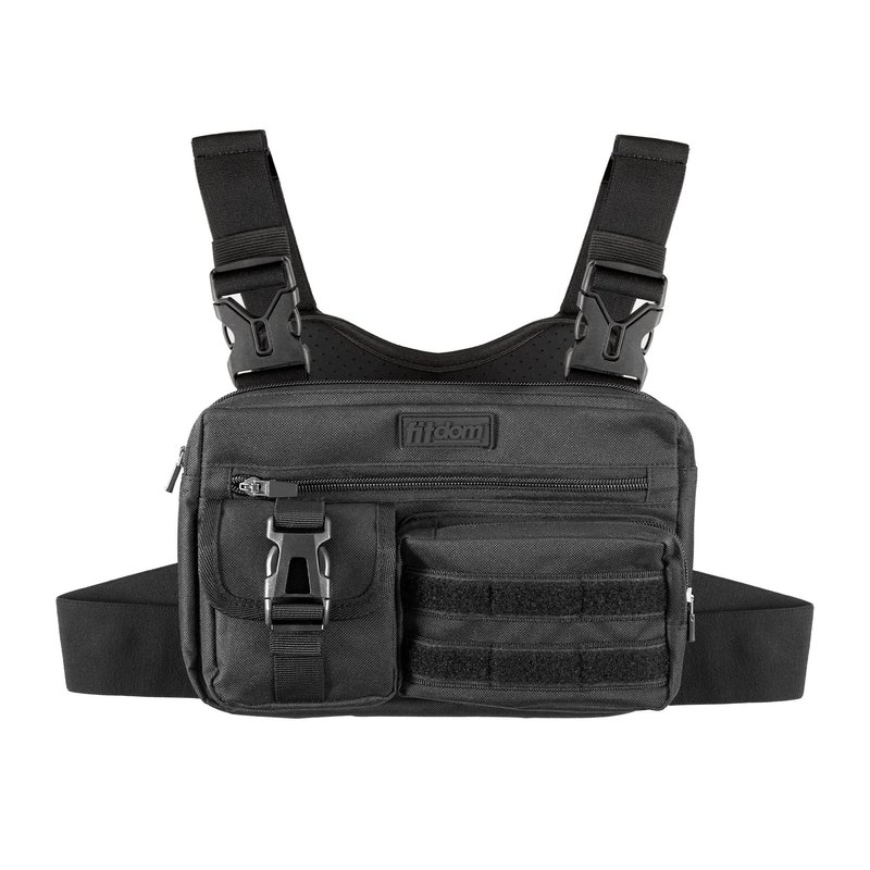 Fitdom Tactical Inspired Sports Utility Chest Pack. Chest Bag For Men With Built-In Phone Holder. This EDC Rig Pouch Vest is Perfect For Workouts, Cycling & Hiking