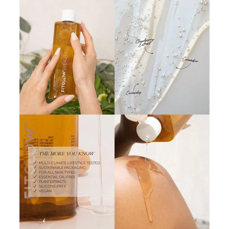 FITGLOW Beauty Cloud Body Wash ceramide-rich serum-in-gel body and hair wash gently cleanses, without removing natural oils or moisture. Plant-based Inulin rebalances and protects moisture while soothing skin. Cloudberry and Cucumber extracts deliver hydrating Essential Fatty Acids and protective minerals. The velvety, delicate head-to toe wash leaves skin feeling soft, supple, and smooth. This super-sized body wash comes in a 16 oz. upcycled bottle.