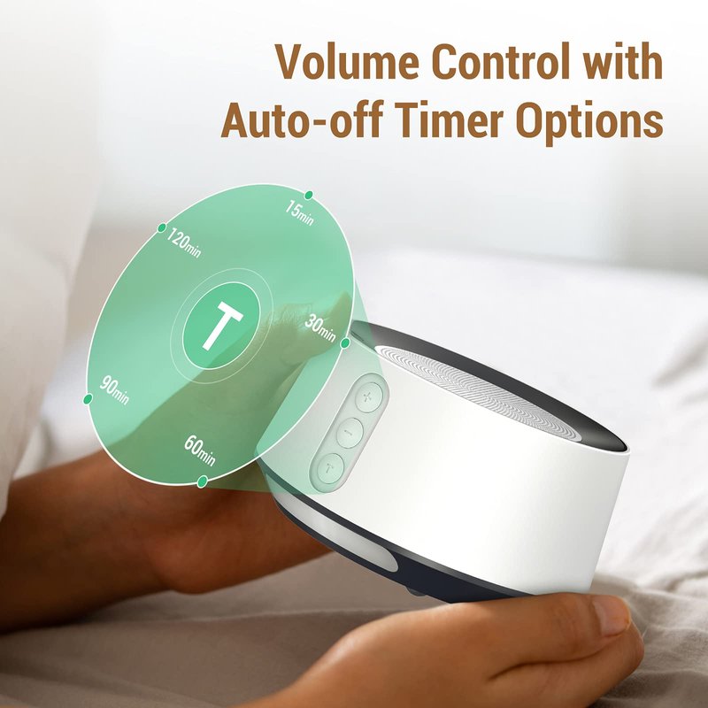 - Timer and memory function: 15, 30, 60, 90 and 120 minutes timer function, schedule the time you want to play the sound. The memory function allows our sleep machine to remember the last sound and volume when it restarts, which means there is no need to worry about resetting.