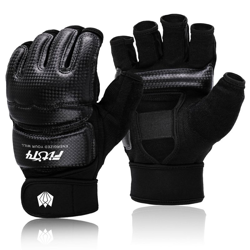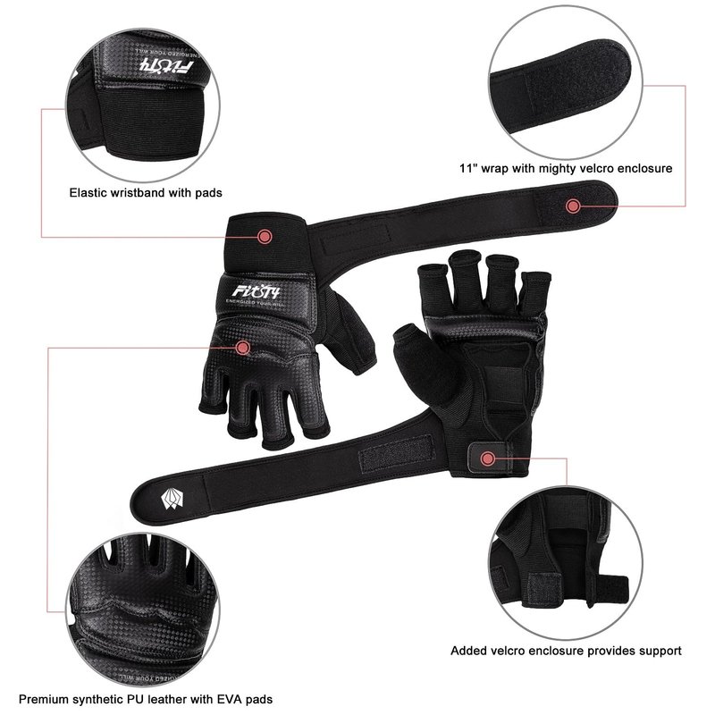 FitsT4 Sports Half Mitts MMA Training Boxing Punch Bag Kickboxing Sparring Grappling Martial Arts Muay Thai Taekwondo Wrist Wraps Support Gloves for Women Men Black L