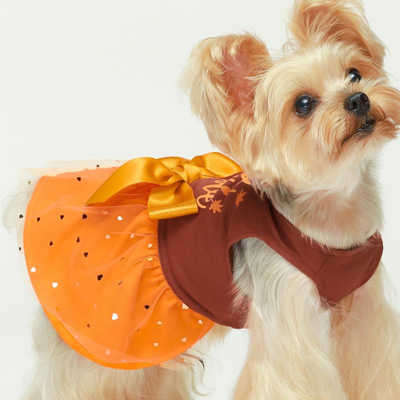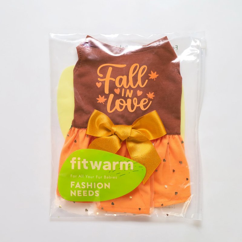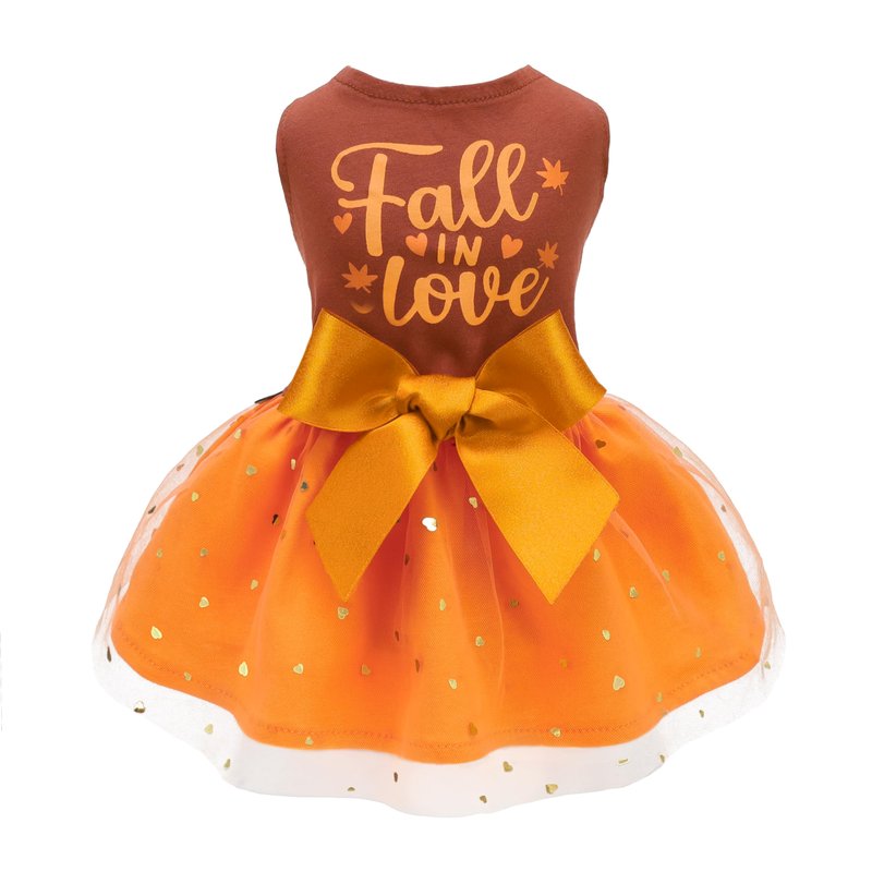 - Princess style doggy tutu combines fall colors with "Fall in Love" lettering, hearts and maple leaves. The bowknots and delicate tulle layers bring a touch of whimsy, delicate sequin accents enhance the charm. Spliced fabric design blends cotton layer and tulle layer perfectly.
