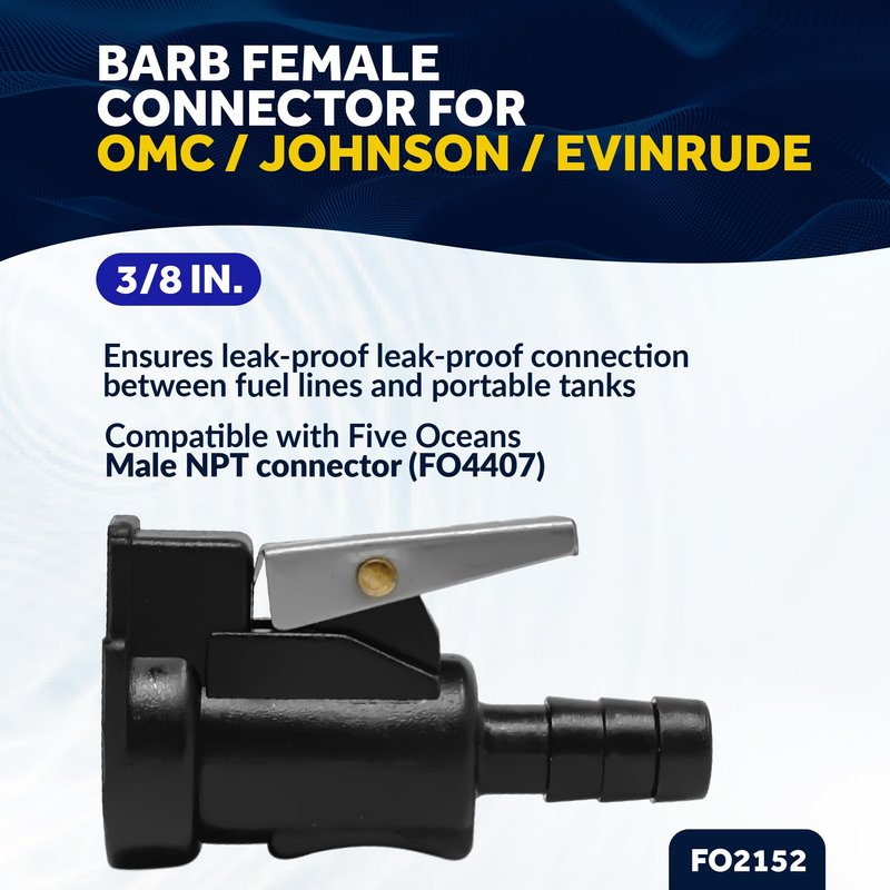 Five Oceans 3/8-Inch Barb Female Fuel Line Quick Connector for OMC - Johnson - Evinrude Outboard Connections and Fuel Tank Side - Outboard Fuel Connector - FO2152