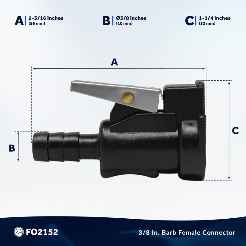 EASY INSTALLATION - Female Fuel Line Quick Connector with barbed fitting for 3/8-inch Internal Diameter Fuel Hose.