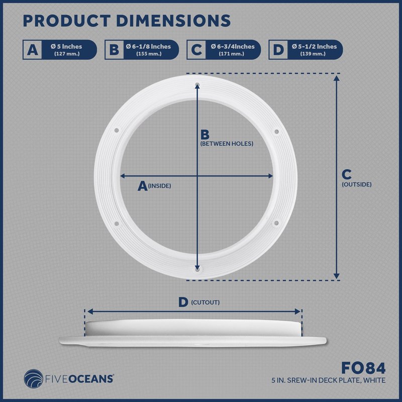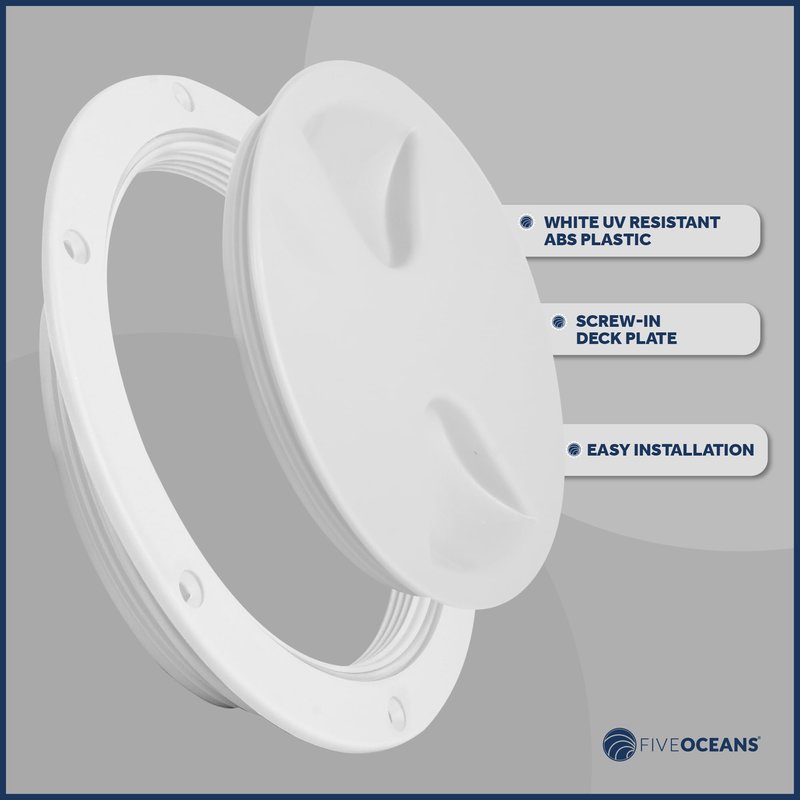 Five Oceans 5" Boat Hatch, Marine Access Hatch, Round Inspection Deck Plate Hatch with Detachable Cover, UV Resistant ABS White Plastic, for Pontoon, Fishing Boat, Bass Boat, Yacht, Sailboat - FO84