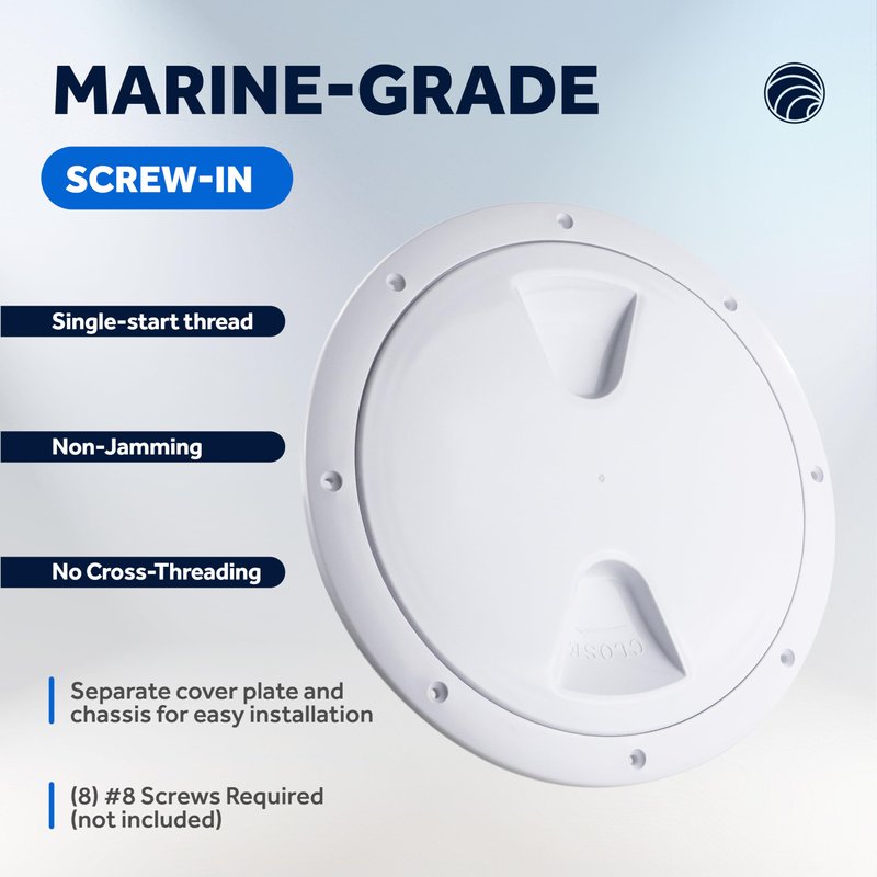 - MARINE-GRADE MATERIAL: Boat Hatch Round Inspection 8" screw-in deck plate is made of anti-aging, anti-corrosive, and UV-resistant ABS white plastic with a smooth finish