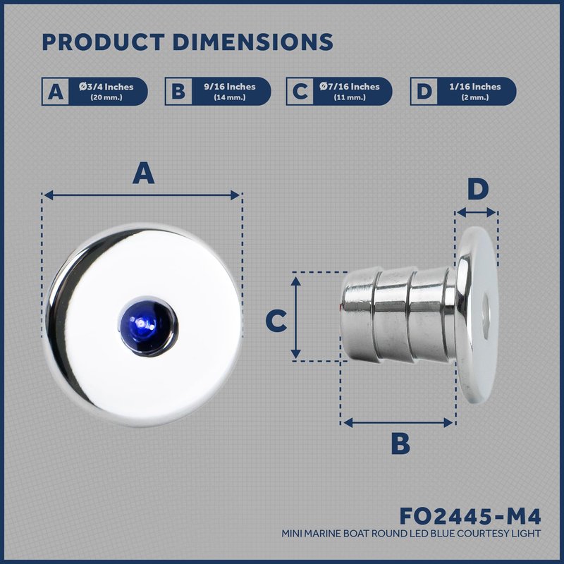 Five Oceans LED Marine Courtesy Lights, 4-Pack Boat Mini Accent Light, Round Deluxe Light for Boat Interior, Deck, Cockpit, Blue LED, for Pontoon, Fishing Boat, Bass Boat, Sailboat, RVs - FO-2445-M4