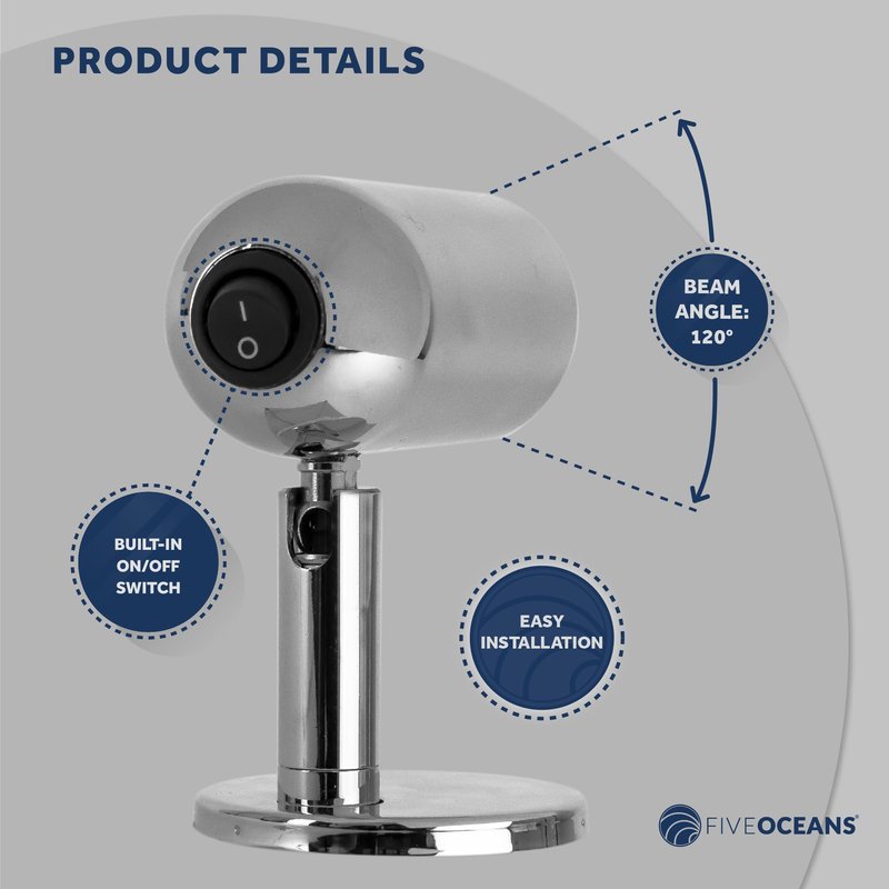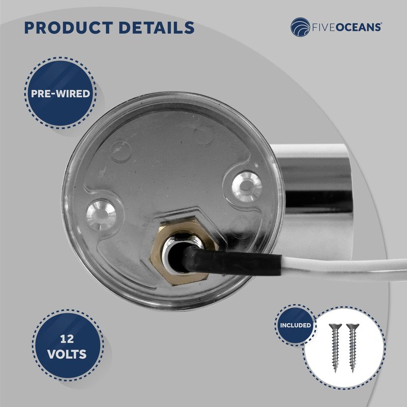 Five Oceans LED Reading Light, RV Interior Lights, LED Light Fixtures, Rocker On-Off Switch, 12-30V, Warm White LED, for RV, Boat, Camper, Motorhome, Trailer, Truck - FO3733