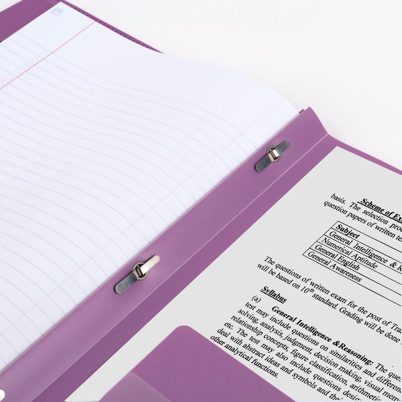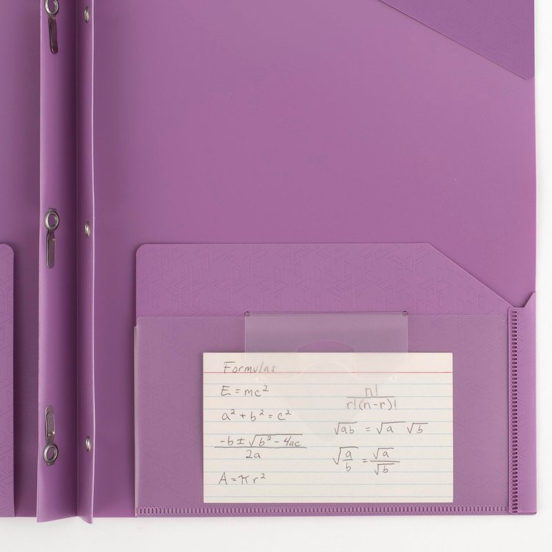 - Pockets and stay-put tabs keep 8-1/2" x 11" papers in place. Prongs provide secure paper storage, plus a pocket holds index cards and more.