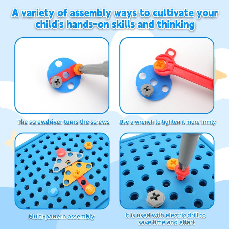 Our Fiveisix 298-piece Montessori Play Kit is a comprehensive early childhood education toy designed to help children learn while having fun. The toolbox contains multiple types of components, including dinosaur cardstock, screws, geometry, and tools, providing a variety of gameplay options. This kit is not only a toy, but also an educational tool, suitable for children 3 years old and up. All components are made of high quality, non-toxic materials to ensure safety. Each component is finely polished to ensure there are no sharp edges. The variety of components allows children to combine freely and use their creativity and imagination. This kit is ideal for a variety of occasions, such as homes, kindergartens, early education institutions, etc. Let children learn through play and develop their cognitive and hands-on skills.