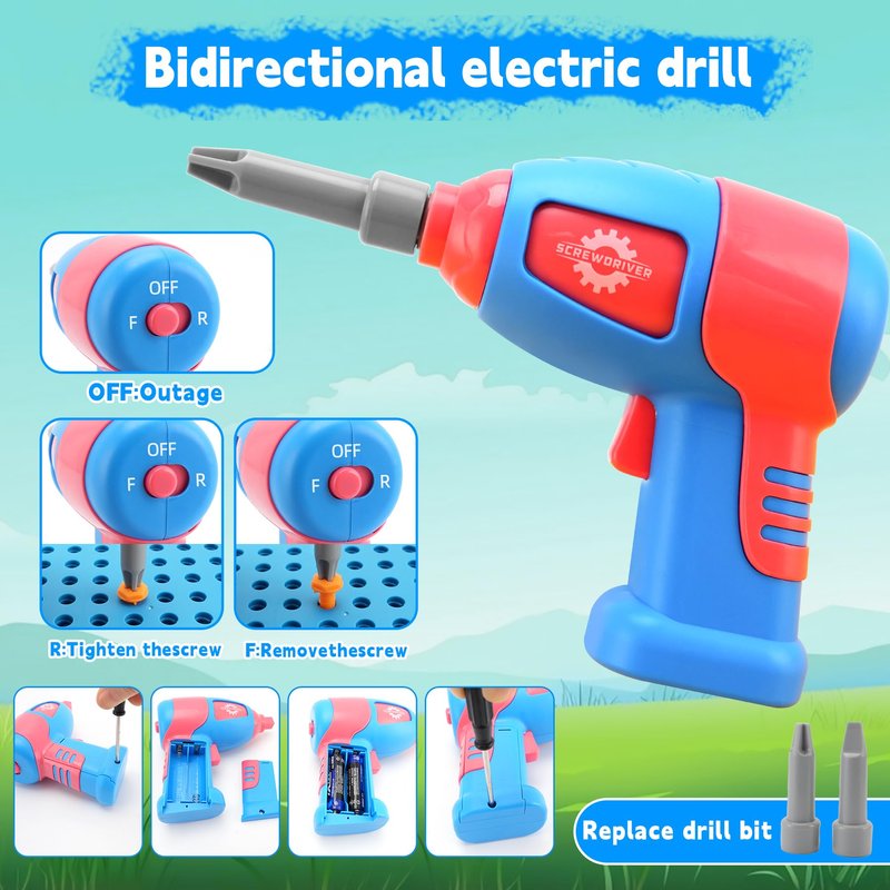 - 【Magical Montessori Toy Box】Fiveisix Kids drill set includes a toy screwdriver, a fun wrench and a realistic drill! Each accessory is polished and burr-free, Drill bit set for ages 3-12. (Drill requires two AA batteries. Batteries not included)