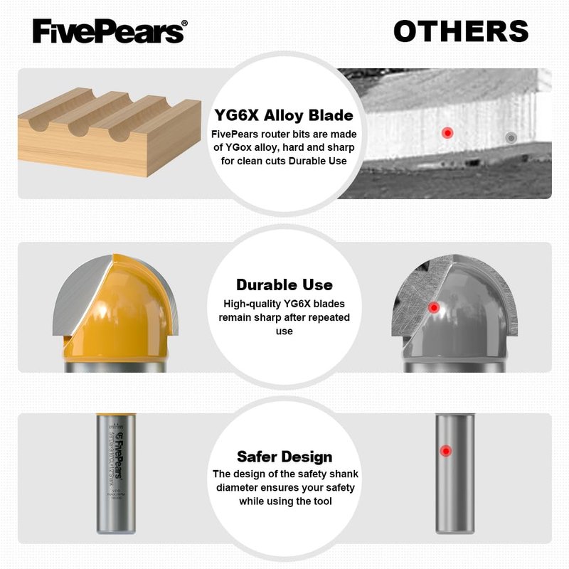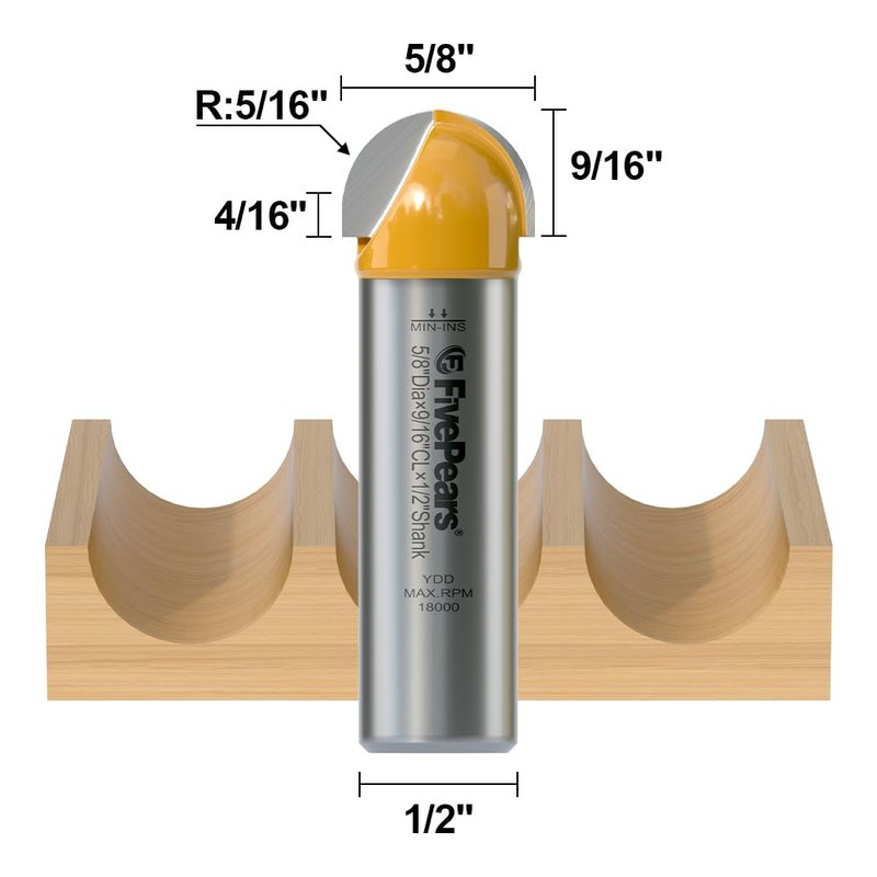 Fivepears Core Box Router Bit with 1/2 inch Shank 5/8 inch Cutting Diameter 9/16 Cutting Length for DIY Woodwork…