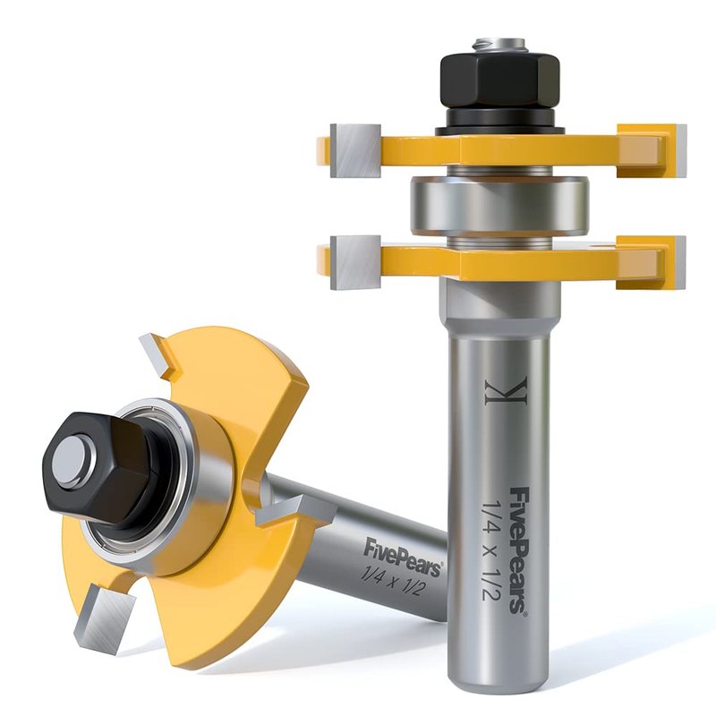 FivePears Tongue and Groove Router Bit Set with 1/2" Shank,T Shape 3 Teeth Wood Milling Cutter Woodworking Tool(2pcs)