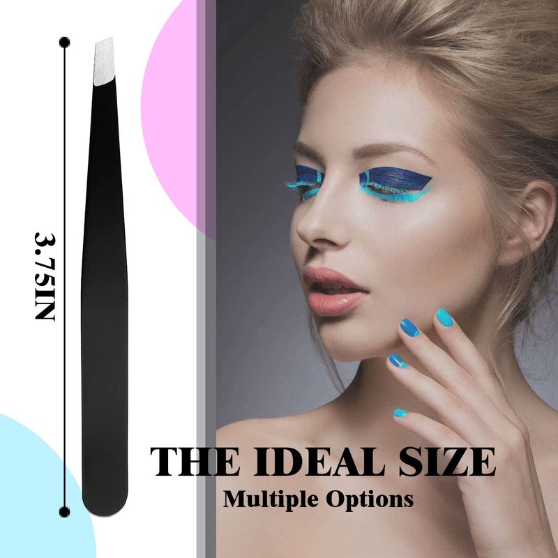 - Design and Function:Tweezer is nice for anyone because of sharp tip and easy of use.Black tweezersnot only stylish but also resistance dirty.Slant tweezer is used for eyebrow removal ,chin hairs,ingrown hairs,removing thick hair perfectly.