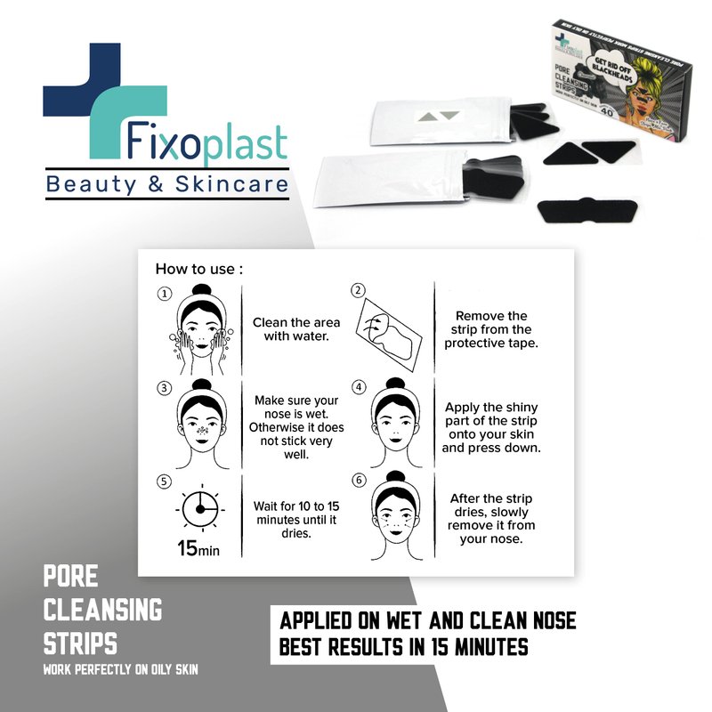 - -Fixoplast Pore Cleansing Strips are designed to remove blackheads from the nose, chin, and T-zone.