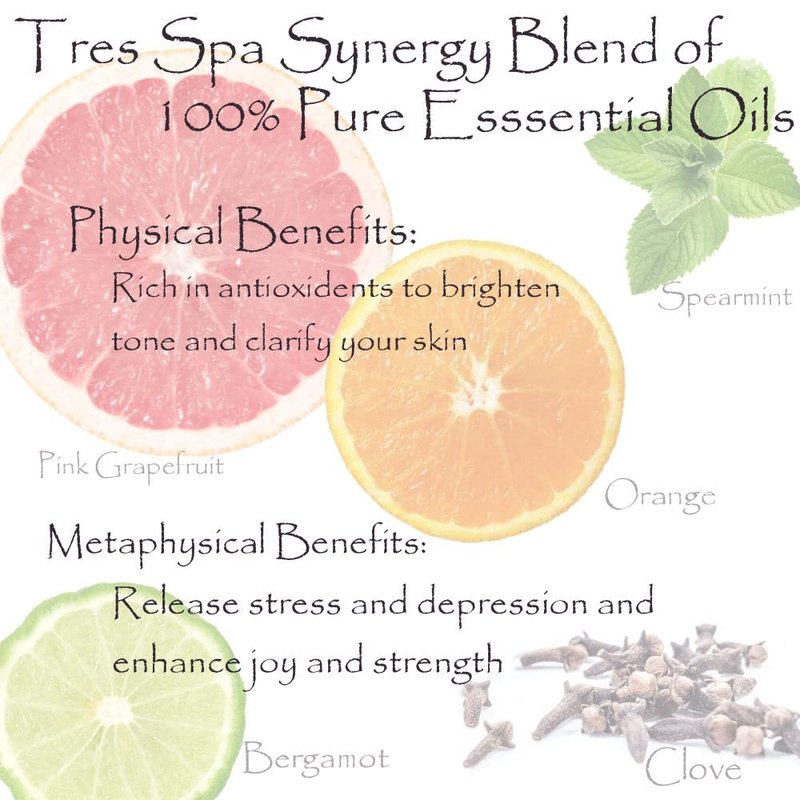 - Scented with pure essential oils. for an aromatic bath. Uplifting Citrus with Orange, Pink Grapefruit, Bergamot, Spearmint and Clove