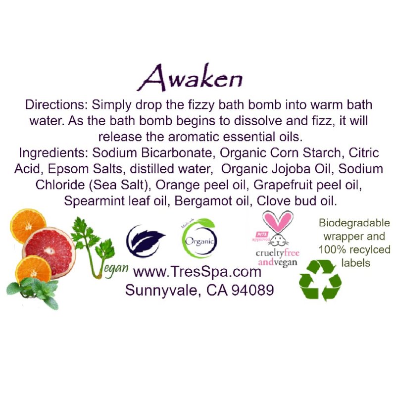 Fizzy Bath Bomb Awaken by Très Spa | Organic Jojoba, Pure Essential Oils | Vegan Friendly