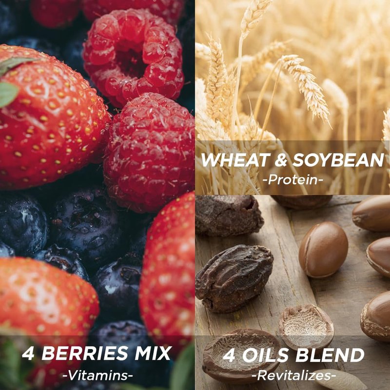 - 🫐 REFRESHING 4 KINDS BERRY COMPLEX SOLUTION : Raspberry, which is effective in hair conditioning, strawberry, which is rich in biotin and various vitamins, and acai palm fruit and amla, which are rich in protein and moisture. Four berry ingredients provide a balanced supply of rich protein, moisture, vitamins, and minerals to extremely damaged hair, providing care for damaged hair.