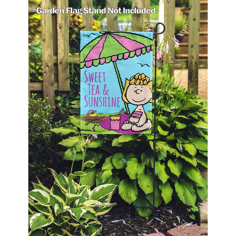Flagology.com, PEANUTS®, PEANUTS® Sweet Tea & Sunshine Sally – Garden Flag 12.5" x 18", Outdoor Flag, Exclusive Premium Fabric, Officially Licensed PEANUTS®, Summer