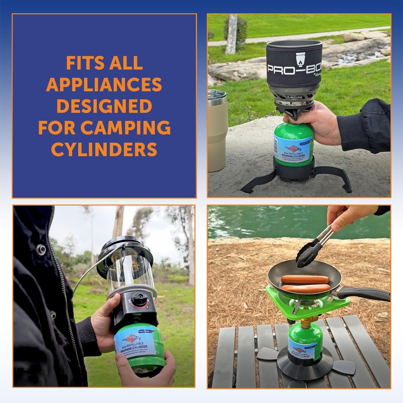 - SAVE MONEY, REDUCE WASTE: Stop wasting money on disposable tanks and start saving money with our reusable, safely, and easily refillable propane cylinders; Keep disposable propane tanks out of the environment by using the Flame King 1/2Lb refillable cylinders