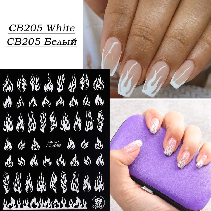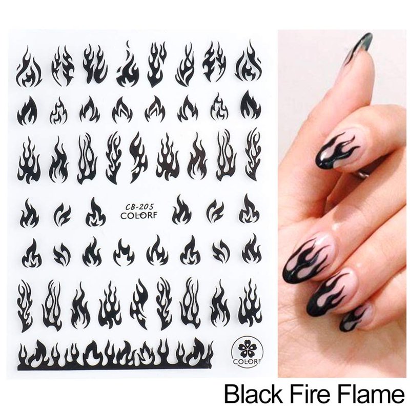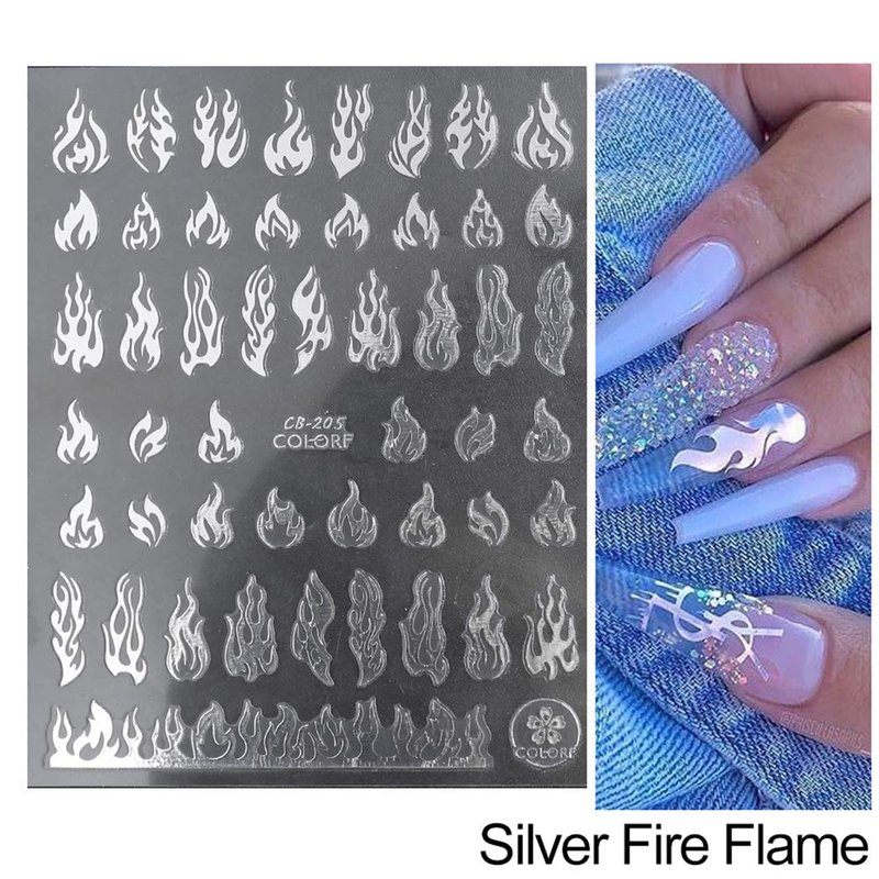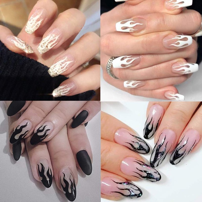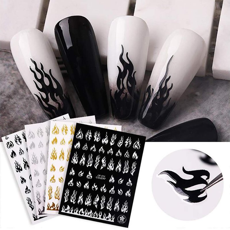 - Flame Nail Stickers: 4 Sheets flame nail art stickers, The most classic four colors, white, gold, silver, black, suitable for natural nails and fake nails, Enjoy the flame style brings passion