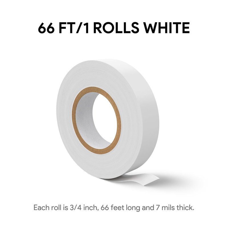 Flame Retardant White Electrical Tape; 1 Roll, 3/4 Inch * 66 Feet;PVC Electric Tape for Under 600V Electric,Repair,Home Outdoor Indoor Wire Insulation,5℉ to 221℉(White)