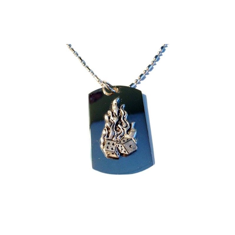 Flaming Dice Gamble Gambling Pewter Emblem Logo Symbols - Military Dog Tag Luggage Tag Key Chain Metal Chain Necklace