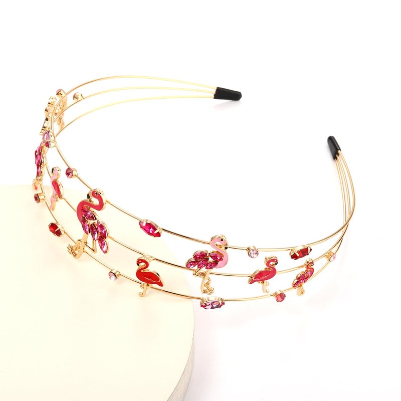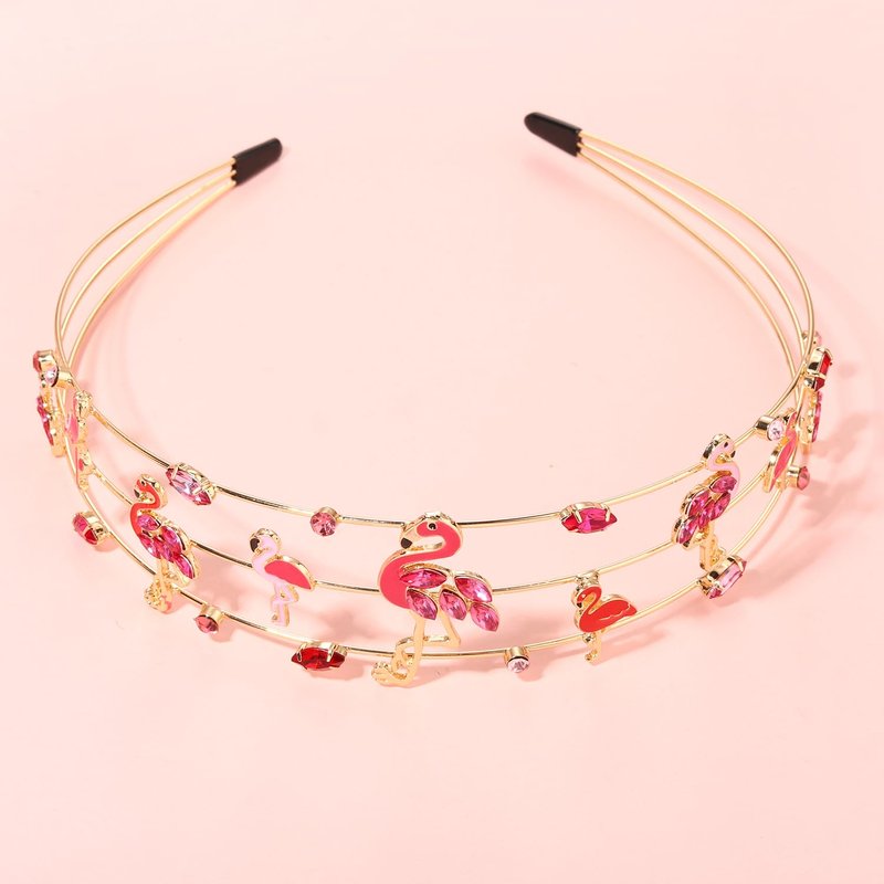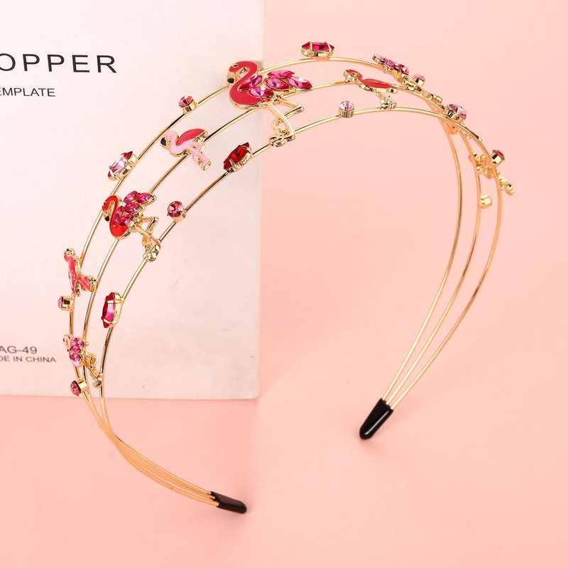 - Flamingo Headband :Flamingo ,it represents the immortal will and the endless hope of life, a symbol of love and freedom commitment.These unique pink crystal jeweled flamingos headband is the perfect statement piece for your outfit! Calling all flamingo lovers! You'll be sure to turn heads this summer. features pink crystal and big and small flamingos decor on wide gold metal hair hoop that create a head-turning look!