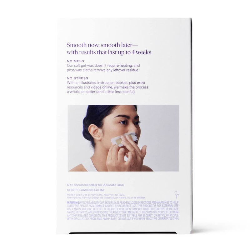 - FACE WAX STRIPS : The Flamingo face waxing kit is designed for an easy at-home hair removal experience. These no-heat face wax strips are formulated for even the finest of hairs, and come with thorough instructions to make the process a little less intimidating. This waxing kit is a great hair removal option for your upper lip, chin, and sideburns. Skip the salon—waxing your face at home just got a lot easier.