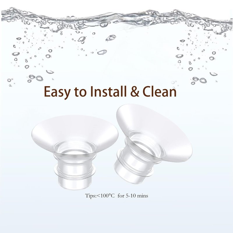 - 【Flange sizing kit】The size of the flange insert is significant for comfortable and efficient pumping. Some moms experience nipple swelling while expressing, so it is advisable to observe the appearance of the nipple during pumping. If your nipple rubs or feels squeezed in the flange channel, it is an unsuitable flange size and you need to replace the right size flange insert.