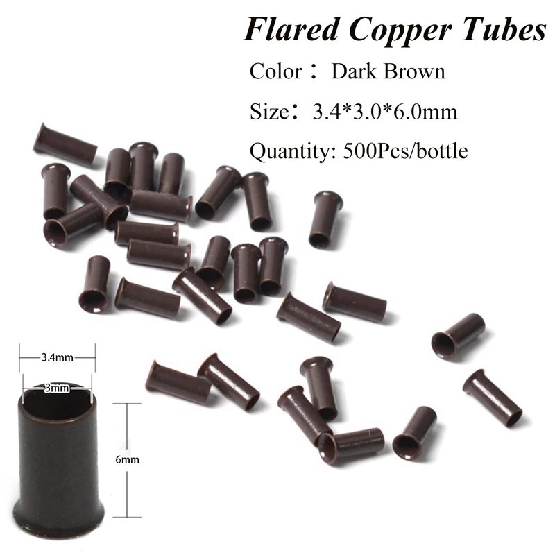 Flare Copper Tubes 3.0mm Micro Rings Links Beads Non-Silicone Flared Euro Locks Hair Staples Tools for I-tip Hair Extensions (500Pcs, Dark Brown)