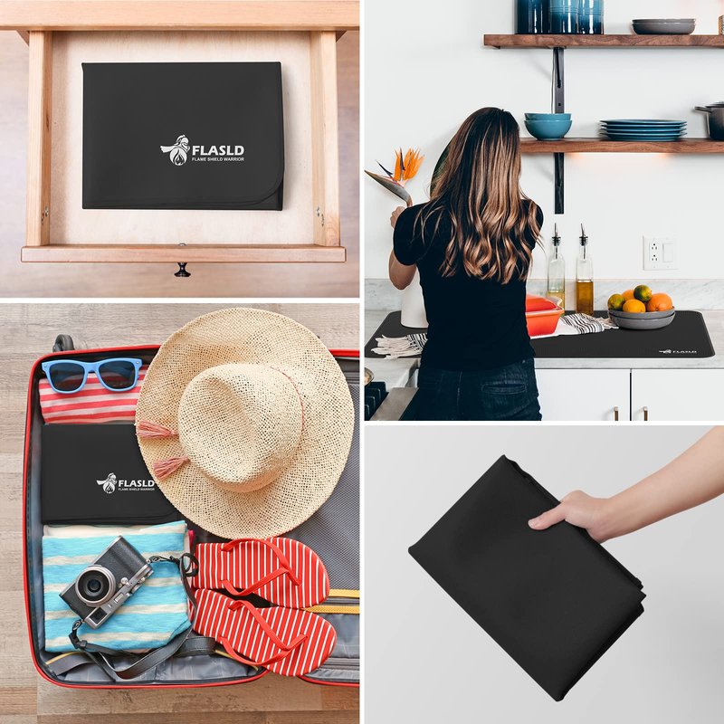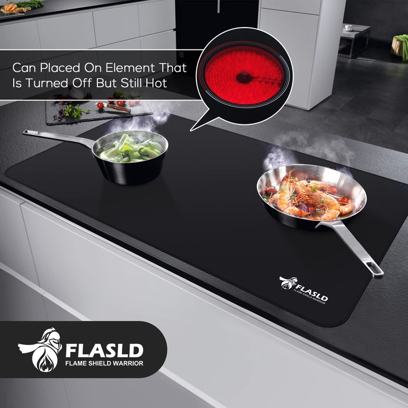 - FIREPROOF AND HEAT RESISTANT - FLASLD glass stove top protector can resistant heat up to 550℃/1022℉, It can placed on cooktop that is turned off but still hot. it can be placed under the air fryer,effectively protect your countertop from heat damage!