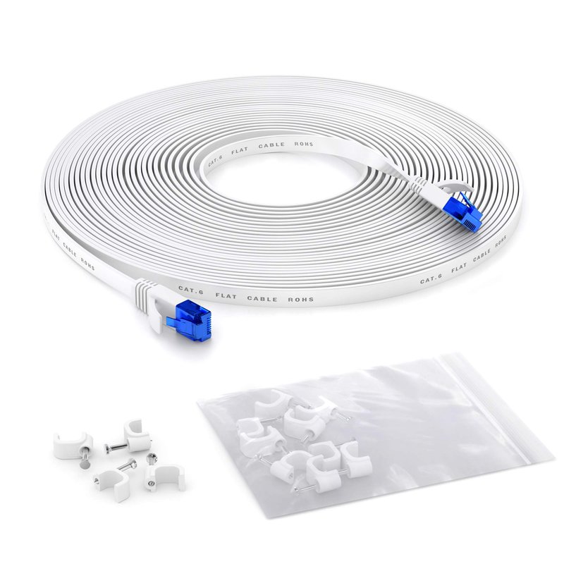 Flat Ethernet cable with break-proof design, internet/LAN cable – 100ft (1Gbps maximum fiber optic speed, highly flexible & suitable for permanent installation, RJ45, white) – by CableDirect