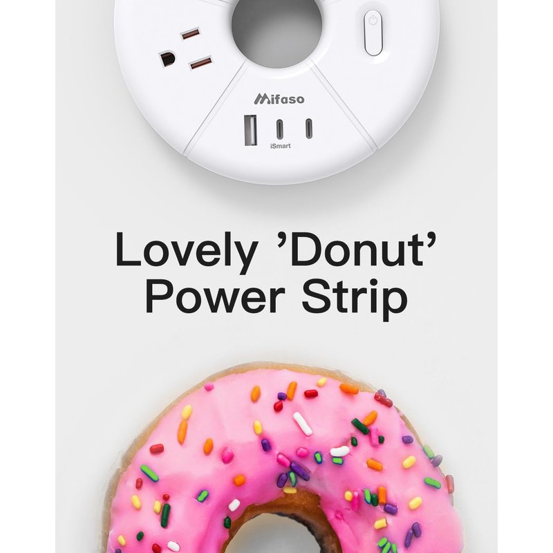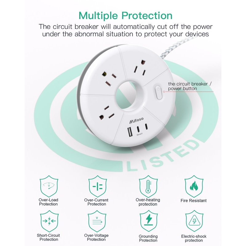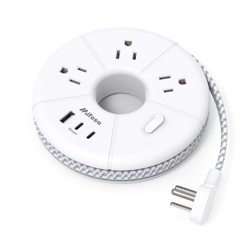 - 【5 ft Wrapped Cord Design, Portable Travel Power Strip】Short power cord wrapping around makes this power strip easy to store in your backpack or suitcase. Only weighs 0.59lb, diameter 5.11", the ideal choice for business trips or domestic journeys. 5 ft extension cord can better meet your daily needs