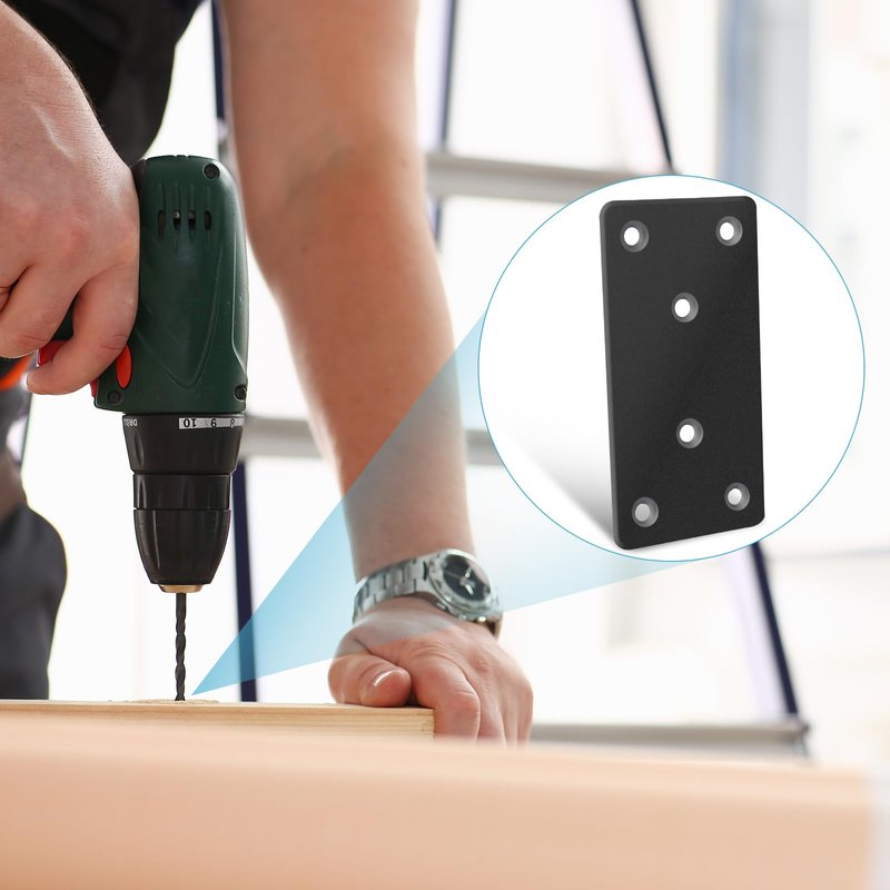50x100mm/2x3.94'' Stainless Steel Flat Mending Plate Metal Bracket for Wood Shelf Support Fixing Joining Plate for Furniture,Wood,Shelves,Cabinet with Screws For Fixing and Repairing Broken Wooden Furniture Fence Barn Door Bed Frame Closet Door and Shelves Features: 1.Constructed from high-quality stainless steel for durability and longevity. 2.Black powder coat finish for superior weather and rust resistance. 3.Polished smooth surface ensures it won't scratch your hands. 4.Countersunk holes for quick and easy mounting with a smooth fixing surface. 5.2mm thickness provides high load capacity and prevents bending. 6.100mm long reinforcing plate ideal for heavy-duty reinforcement applications. 7. Applications: Black mending plates are perfect for wood furniture repair and DIY projects. They are ideal for: -Joining furniture joints and corner boards -Repairing fencing or timber -Fixing wooden beds and bookshelf frames -Reinforcing wobbly furniture and garden shelves -General furniture making and strengthening tasks.