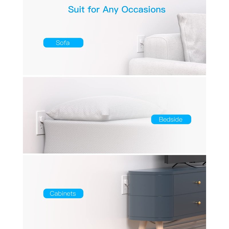 - 【Ultra Thin Flat Plug & 6Ft Extension Cord】- With only 0.35 inch ultra thin plug and 45° right angle design, the flat plug power strip is much thinner than traditional plugs, which can close to the wall easily, and hide in the back of furniture, bed or refrigerator; 6ft extension cord is made of pure copper, which has better current carrying capacity (15A). The braided power cord is not easy to deform, durable and more safety