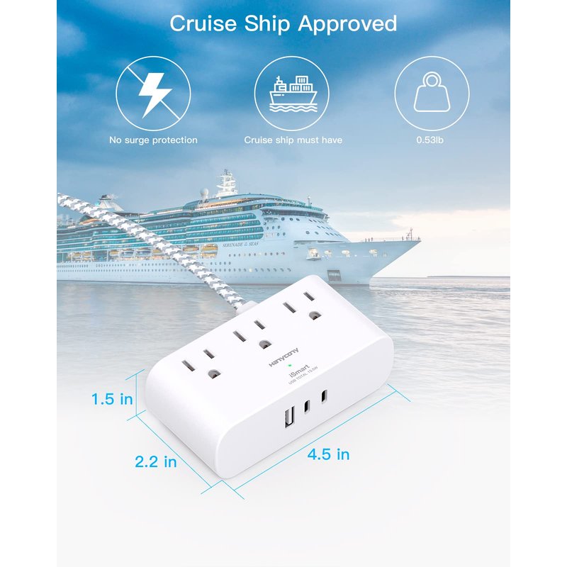 - 【Cruise/Travel Accessories Must Haves 】- The compact cruise power strip with NO surge protection, it's absolutely a must have Travel and Cruise Ship accessories as Cruise lines require that power strips DO NOT have Surge Protection. The power strip is small size and lightweight, easy to carry and best for travel essentials