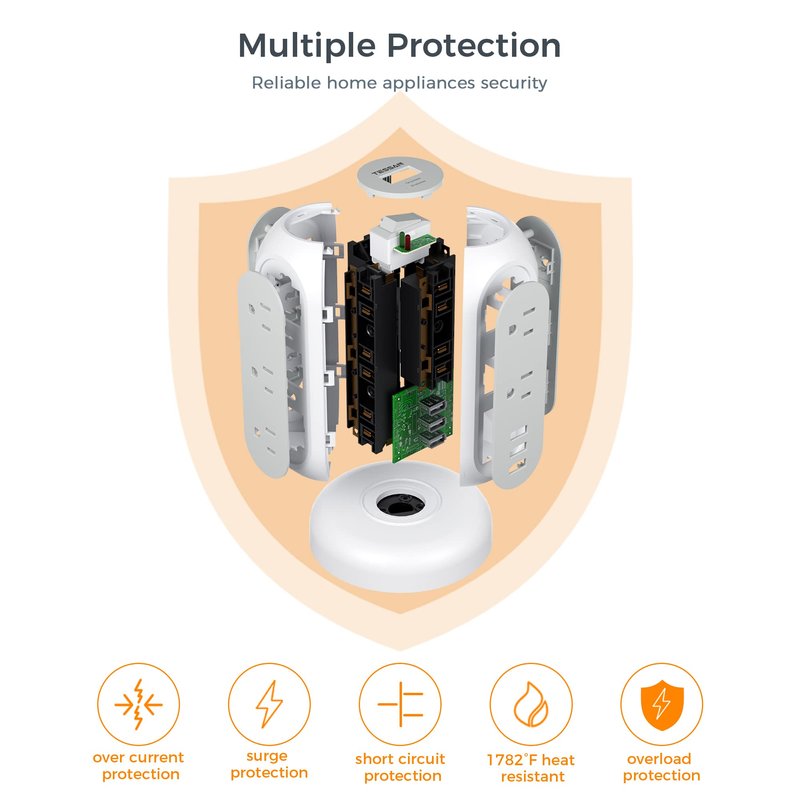 - Unique Design and Widely Use: This tower power strip surge protector is novel and stylish. Compared with other larger and bulkier strip, it is more portable and save space. Widely use in Office, College, dorm room or Home for your PC, computer, laptop, phones, tablet, printers, speakers and other devices