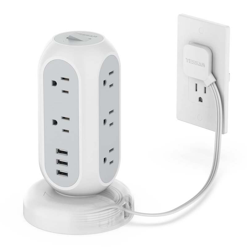Flat Plug Power Strip Tower, TESSAN Ultra Thin Retractable Extension Cord 5 FT, Surge Protector 11 Outlets with 3 USB Charging Station, 1050J, Office Supplies, Desk Accessories, Dorm Essentials