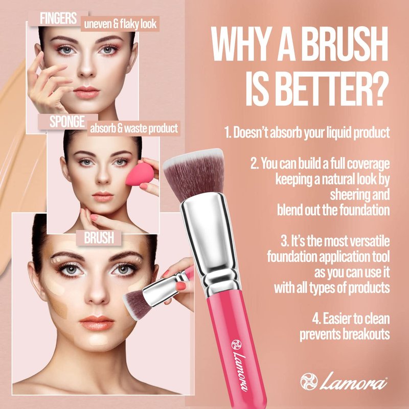 - With Lamora´s flat foundation brush you will achieve not just a smooth and flawless foundation but also experience an outstanding customer service that guides you through the ordering/shipping process and provides you with awesome beauty tips for your kabuki brush for liquid foundation. Perfect flat brush for makeup.
