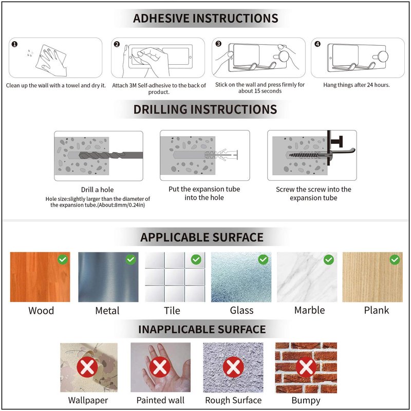 - 😘 Safe & Sturdy - Just screw the bracket into the wall. It's very solid, you don't have to worry about falling. After refined polishing and wire drawing, it not only has a smooth and beautiful surface, but also plays a role in anti-corrosion and anti-rust