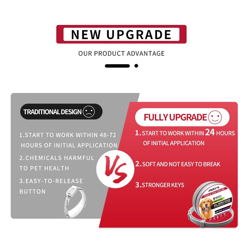 - 【Long-lasting】: Jmxu's flea and tick collar like no other, flea prevention collar prevents both flea and tick infestations via simple contact with your dog's skin and provides long-lasting protection for up to 8 months.