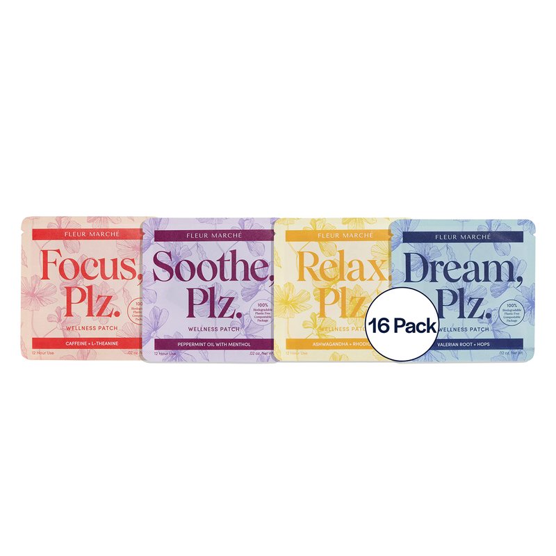 Fleur Marche Everything, Plz Botanical Patch Variety Pack - 4 Wellness Patches with Plant Powered Ingredients - Relax, Focus, Soothe, Dream - Highly Bioavailable Patches - 16 Patches