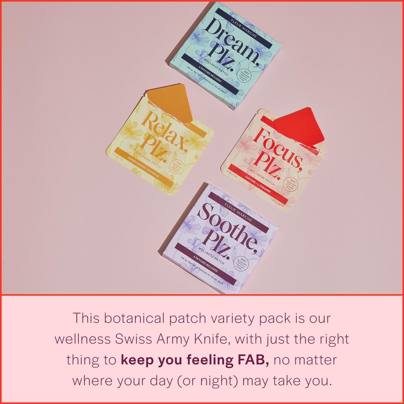 EVERYTHING, PLEASE: If you need ALL the wellness, look no further. This botanical patch variety pack is our wellness Swiss Army Knife, with just the right thing to keep you feeling FAB, no matter where your day (or night) may take you