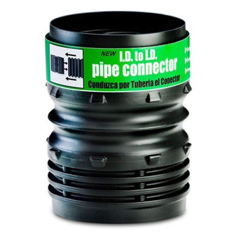 - I.D to I.D. pipe connector features an inner dimension that connects to 3 In. pipe and an outer dimension that connects to 4 In. corrugated pipe and PVC pipe