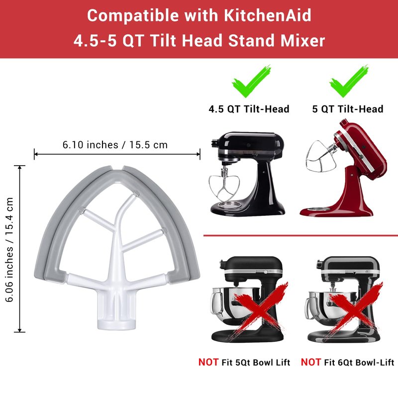 - ❤️🔥Flex Edge Beater for KitchenAid 4.5-5 Quart Tilt-Head Stand Mixers: Introducing our flex edge beater mixer accessory for KA 4.5-5 Quart Tilt-Head Stand Mixers. The paddle attachment with double silicone-edged beater offers thorough and consistent mixing of batter & dough, compound butters, pie pastry, creamed frostings, mashed potatoes, and more.