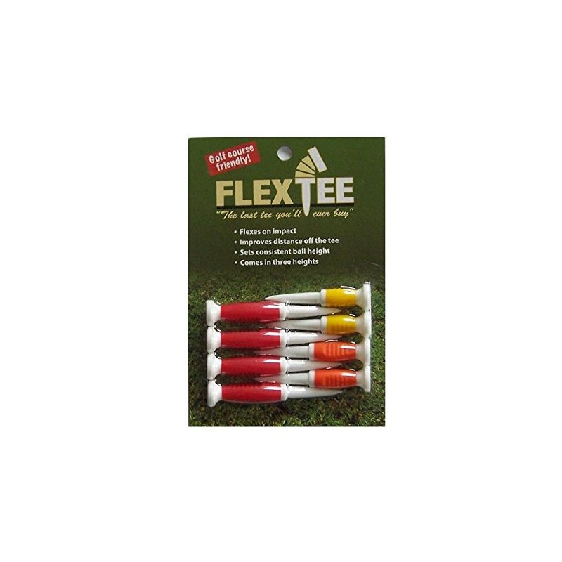 Designed to make every golfer of any handicap better by adding distance to each tee shot. Improves the consistency of your game. The built-in stops allow your ball to be set consistently at the optimized height for each iron, fairway, or driver tee shot you make.Three heights of FlexTee make setup simple and easy. With patent pending "Flexible" design, FlexTee reduces drag and gives every shot incredible distance and accuracy. Pack Contains : 2 x Yellow - 2.25", 2 x Orange - 2.5", 4 x Red - 3"